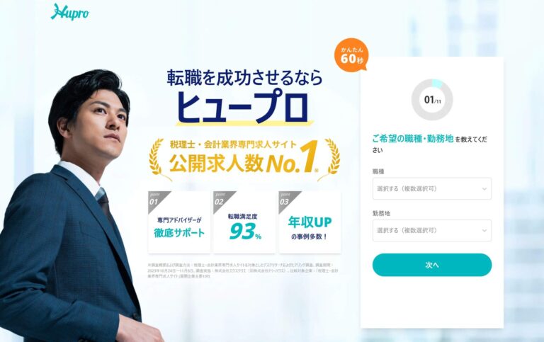 Hupro(以下、ヒュープロ)は、社会保険労務士や税理士など士業に特化した転職エージェント。だから社会保険労務士転職にも強さを発揮します。